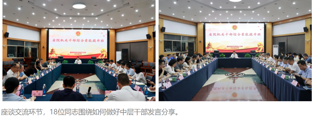 为提高浙江省检察院机关中层领导干部综合素能,9月28-29日、10月9-11日省检察院举办机关干部综合素能提升班,省检察院机关(含直属事业单位、杭州铁路运输检察院)二级巡视员、二级高级检察官、政治部副主任、正副处长参训。